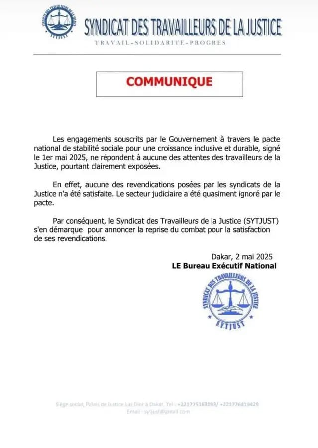 🔵 Le SYTJUST déchire le pacte de stabilité sociale